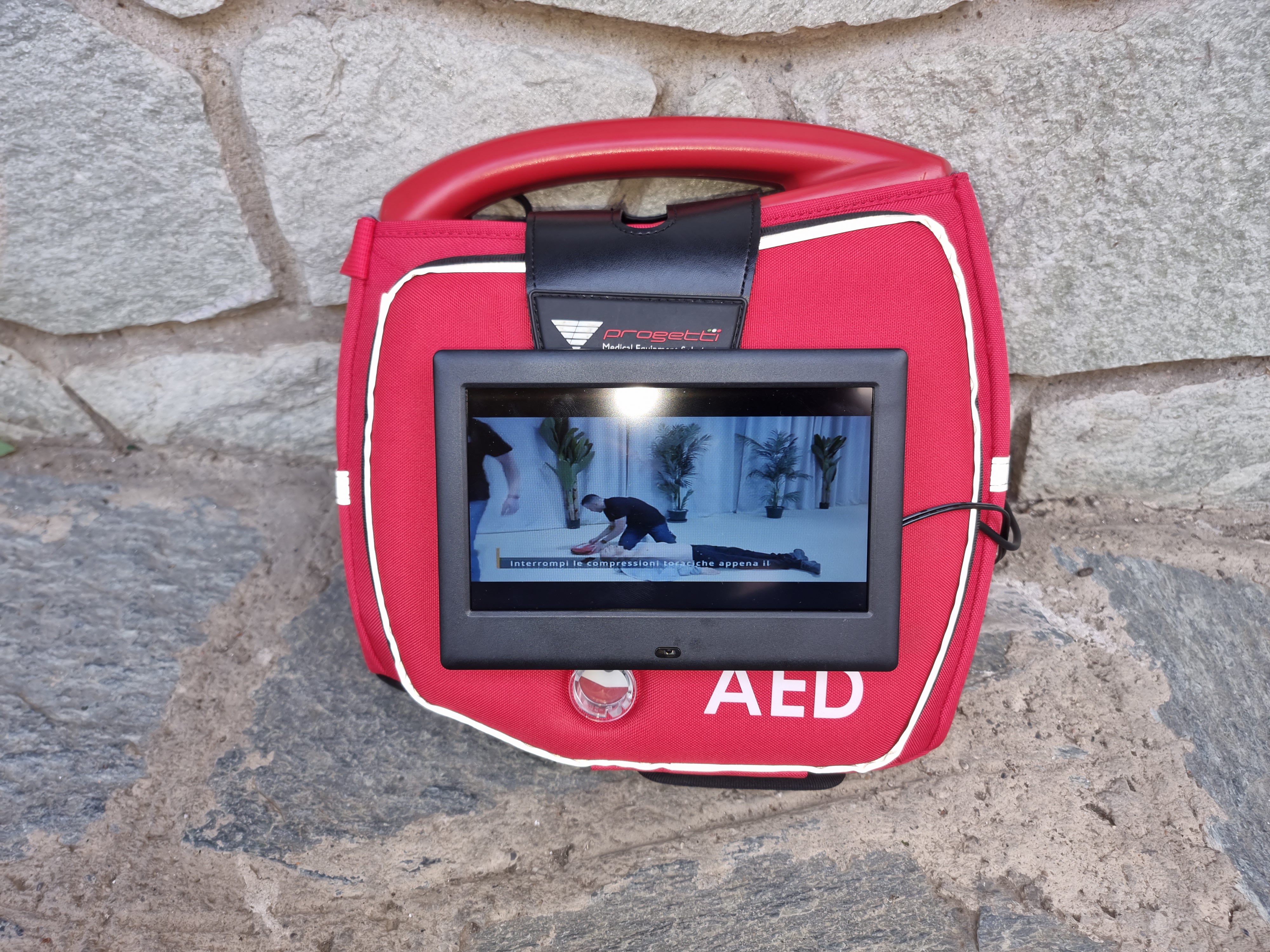 AED Proximus®, Borsa Tutorial Universale per DAE permette la visione in loop di un video Tutorial (personalizzabile) anche quando lo stesso si trova nella sua condizione di riposo (pronto all’uso);